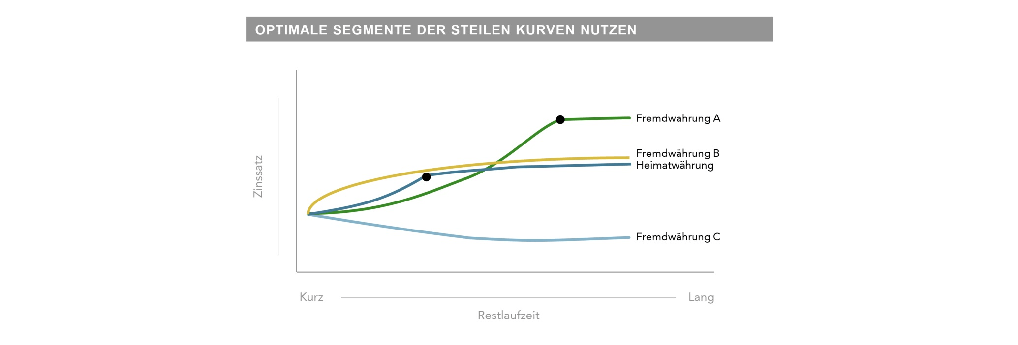 Forschungen haben gezeigt, dass aktuelle Terminkurse verlässliche Informationen über zukünftige Laufzeitprämien enthalten. Ziel einer variablen Laufzeitstrategie ist es daher, in den steilsten Teil der Zinsstrukturkurve zu investieren und das Wertpapier über genau jenen Zeitraum zu halten, der zu den höchsten erwarteten Renditen führt. Beispielsweise kann es sinnvoll sein, eine Anleihe für nur 6 Monate zu halten – sie am steilsten Punkt zu kaufen und nach 6 Monaten wieder zu verkaufen, und dies für die darauffolgenden 6 Monate zu wiederholen, anstatt diese Anleihe für das gesamte Jahr zu halten.